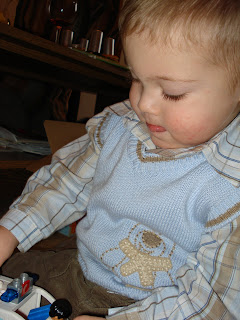 Tegnap Mayáéknál élőben is volt szerencsém találkozni a Télapóval!Az ebéd utáni sziesztámból felébredve Mami csinibe vágott,és Apával kibővülve átautóztunk rég nem látott Cicó barátnőmhöz.Ott aztán minden volt.Eszem-iszom,dínom-dánom és csajok dögivel.Egyetlen vetélytársam Olivér még kicsi ahhoz,hogy elorozza előlem a nőszemélyeket,úgyhogy igazán nincs okom panaszra.Ott volt természetesen Cicó, Emma,Blanka,és Flóra is.Nagy sikert arattam.Főleg Flóránál,aki most kezdett egyedül járni,ezért sokszor siettem a segítségére,mint egy igazi lovag.Mondjuk sok lehetőségem nem volt,mert ha hívta a gravitáció rögtön az ingembe kapaszkodott.Mielőtt még nagyon belemelegedtünk volna a játékba megérkezett a Nagyszakállú is.Kicsit mindenki meg volt szeppenve,sajna be kell,hogy valljam,én is :(.Na de azért Mami oltalmában odamerészkedtem hozzá,és megengedtem,hogy átadja ajándékait,egy csodás kukásautót,könyveket és egy kutyust.Mikor elment,kicsit sírtam utána,de azért lelkesen integettem.Ezután folytatódott a buli.Mindenki minden játékot kipróbált,és szülőket is cseréltünk néha:).Maya Happy kutyusába egyenesen beleszerettem:).És Blanka nagyon cuki volt a télapó-gúnyájában.Flóra szokás szerint mindent megkóstolz(szó szerint mindent!!!),Emma szépen énekelt,Olivér bátran beült a Télapó ölébe,Maya pedig Cicó.De hisz tudjátok.A barátom.Kell ennél több???