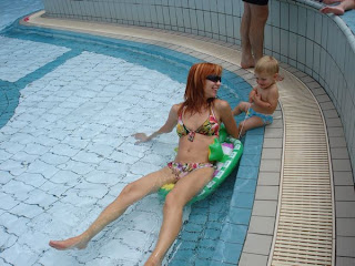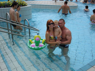 Miután az időjárás romba döntötte a balatoni terveinket,viszont Apa csúnyán meglépett a haverokkal,Mami rávette Nagyit,Keresztmamiékat és a Huber familia lánytagjait,hogy tartsanak velünk Esztergomba,ahol esős időben is lehet pancsolni.Szuperül sikerült a nap,felfedeztük,hogy Maya is imád nagy vízben fürdeni,és a játszóházban is remekül elvoltunk.Remélem hamarosan újra megyünk.