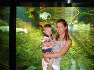 Csütörtökön meglátogattuk a vizi élővilágot.Én nagyon élveztem,de a felnőttek kicsit bosszúsak voltak,ugyanis a Vivárium weboldala alapján sokkal nagyobb és ésrdekesebb helyre számítottak.Először megnéztük a színes halacskákat,rájákat,krokodilokat.Nekem legjobban a kavicsok tetszettek,és a pocsolyában rohangálás.Aztán áthelyeződtünk az épület másik részébe,ahol az ígéretek szerint együtt lehetett volna pancsolni az állatokkal(persze üvegen keresztül).Sajnos a takarító néni tartósan szabadságolta magát,így az akvárium üvege átláthatatlan volt,ső,mivel csak a mi oldalunk volt megvilágítva,inkább az állatok nevethettek Apáék fürdőgatyás popója láttán.A gyerekpancsolónál viszont nagyon cuki halacskák voltak.Apát legjobban az bosszantotta,hogy az italautómatából sör helyett csak üdítőt volt képes kivarázsolni