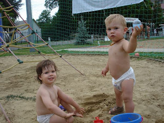 Megkezdődött a leválásSzombaton első alkalommal Mami nélkül töltöttem az éjszakát.Délután átmentünk Nagyiékhoz,majd este Apa és Mami jól megléptek,én meg ottmaradtam a Nagyszüleimnél.Fürcsi után Nagyi bevetette énekesnői tudását,és elég gyorsan elaltatott.Az éjszaka viszonylagos nyugalomban telt,csak egyszer ébredtem fel,és követeltem a Mamit,de rövid úton visszaaludtam,és egészen reggelig aludtam.Akkor megkaptam a szokásos rizstejcimet,és még fél 9ig durmoltam,majd vigyorogva ébredtem.Eközben Apa és Mami kettesben randalírozhattak.Vasárnap reggel értem jöttek,és meg sem álltunk Esztergomig.Ott az aquaparkban találkoztunk Keresztmamiékkal és a Lukács familiával.Szuper jó nap volt.Nagyokat pancsoltam,ettem,kavicsot gyüjtöttemé,homokoztam Emmával,és még véletlenül sem aludtam.Máskor is megismételjük.