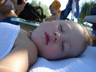 A csütörtöki kánikulát a Rukkel tónál terveztük átvészelni.Felszedtük Anga nénit (keresztapu szerelme) és Nagyit,és a Mami által kinyomtatott térképrészlet alapján elindultunk.A kb. fél órás útból sikerült 2 órásat csinálnunk,aminek is a nagy részét az M0-ás és M5-ös autópály igen pici szakaszán való ide-oda autózgatással töltöttünk.Hiába na,csak a női navigátorokban ne bízzon az ember.Még szerencse,hogy van légkondi az autónkban és Mami elemózsiával is készült.Aztán csak odakeveredtünk valahogy a helyszínre,és szerintem megérte az autózást.Szupi kis tó ez.Nagyon tiszta minden,van játszótér árnyékos homokozóval,sok csúszda,miegymás.Nagyon élveztem.Köveket dobáltam idegen nénik és bácsik pokrócára,mert szerencsére a strand kellő mennyiségű kővel rendelkezik,úgyhogy nem unatkoztam.Nagyokat pancsiztunk,homokoztunk,csúszdáztunk és még egy kis alvást is hajlandó voltam beiktatni.Persze csajoztam is,kizárólag a bikinis ,cicis felnőtt csajok érdekeltek.Apa büszke lenne rám,ha nem a dolgozóban főzte volna éppen a popiját szegény.Szóval jó kis nap volt.Remélem még megismételjük