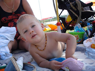 Kedden felkerekedtünk,és meg sem álltun Szigetszentmiklósig,ahol az Oázis Strandon kötöttünk ki.Találtunk egy jó kis árnyékos placcot,ahonnan nyomban elindultam volna feklfedezőútra,de Mami holmi átöltözést és krémezést erőltett.Nem értem miért pazarékolnám ilyen felesleges dolgokra a drága időmet???Azért sikerült bepótolnom az elvesztegetett perceket.Amint Mami letette a popiját a plédre,én eliramodtam,Ő meg rohangálhatott utánam.Igazán hálás lehetne,hogy így karban tartom az alakját.Emma és Maya szülei csak ámultak-bámultak.Ők még ilyet nem láttak.Meg is beszéltem Oli barátommal,hogy legalább Ő ne hozzon szégyent a fejemra,ha majd elindul.Szegény Apa eközben a dolgozójában aszalódott.Sokat gondoltunk rá,miközben kipróbáltuk a medencét,ami a csajok szerint hideg volt,de nekem bejött.Felfedeztük a játszóteret is.Volt ott egy bátor galamb,akit jó közelről megcsodálhattam.Gyüjtöttem kavicsot,és felmásztunk Mamival a mászókára is,emiről aztán extra iramban menekültünk,mikor elkezdett inogni alattunk...
