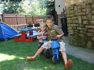 Szerdán Pí barátom névnapjára voltunk hivatalosak.Volt ott eszem-iszom dínom-dánom.Vittük a járgányomat is,biztos,ami tuti.Nagyon jól éreztem magam,csak ámultam-bámultam,hogy milyen hangzavart és rohangálást rendeztek a nagyfiúk.Mami is csak ámult-bámult,hogy mi vár rá,ha nagyobb leszek.Megismertem Bobó kutyát is.Jó kis délután volt,remélem megyünk máskor is!