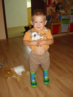 A motoron kívül még kaptam a Dédimtől egy csili-vili békásgumicsizmát,hogy az őszi esőzések után Mamival ki tudjunk menni pocsolyázni!!!Már alig váromMég fényvisszaverő is van a hátulján.Keresztapu pedig lőtt nekem egy szupi játékmotort a búcsúban.Két pálcáss volt.Sajna a kivitelezők nem ismernek engem,úgyhogy sikerült három nap alatt tönkretennem.Viszont Apa legnagyobb örömére Keresztapu és Anga megleptek még egy zenélő kisautóval is.Másnap reggel Apa szarancséjére én tovább durmoltam,mint Ő,és csak Mamit sokkoltam a kora reggeli autós ébresztővel
